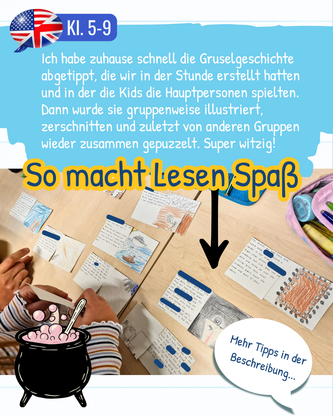 Seit meine Tochter Halloween zu ihrem Lieblingsfest erklärt hat - ja, noch vor Weihnachten und Geburtstag - liebe auch ich Halloween. Es lenkt mich auch immer gut davon ab, dass jetzt der graue, nasse Teil des Jahres folgt. Ich habe Halloween als "theme" dieses Jahr daher gehörig ausgedehnt. Hier meine besten Tipps für dich, fast alles, was ich in drei Wochen in der 6. Klasse (zwischen den Inhalten simple past/holidays/celebrations und future/people description) behandelt habe. Welche der vier (und mehr) Tipps und Methoden ist dein Favorit?